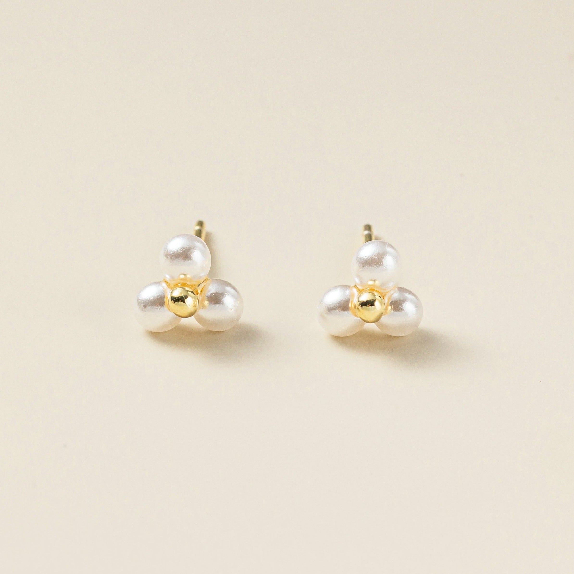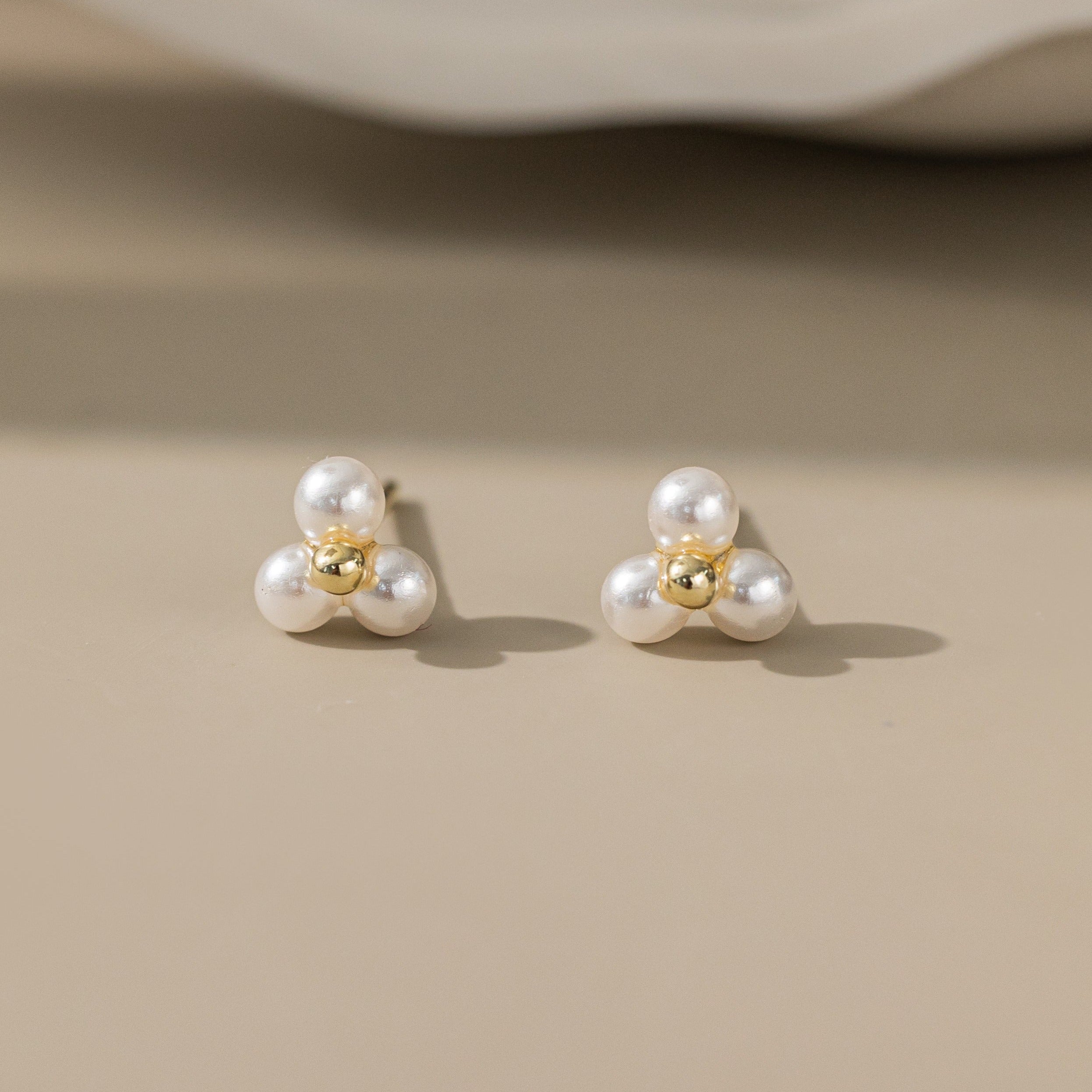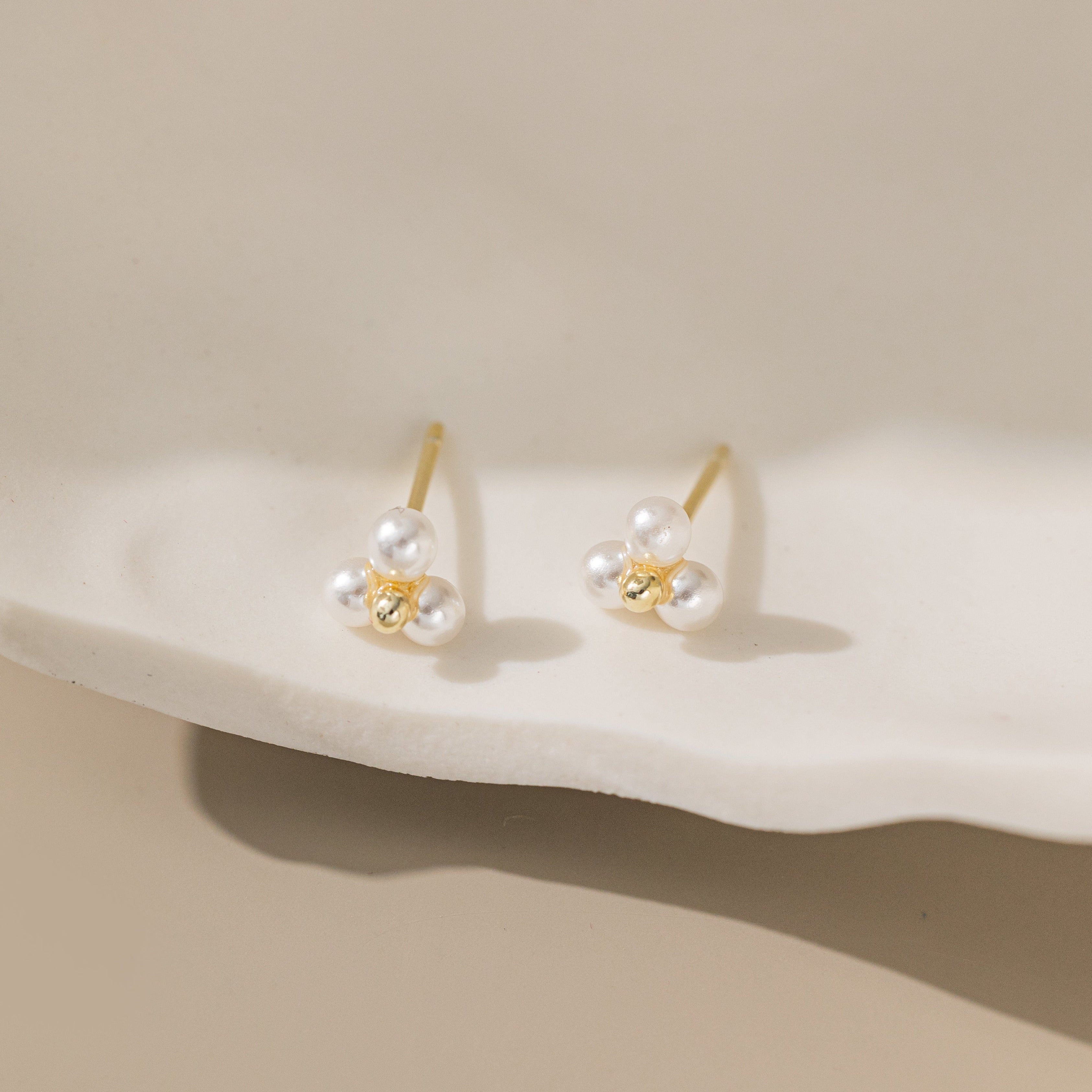 Triple Tiny Bead Pearls Stud Earrings (S925)