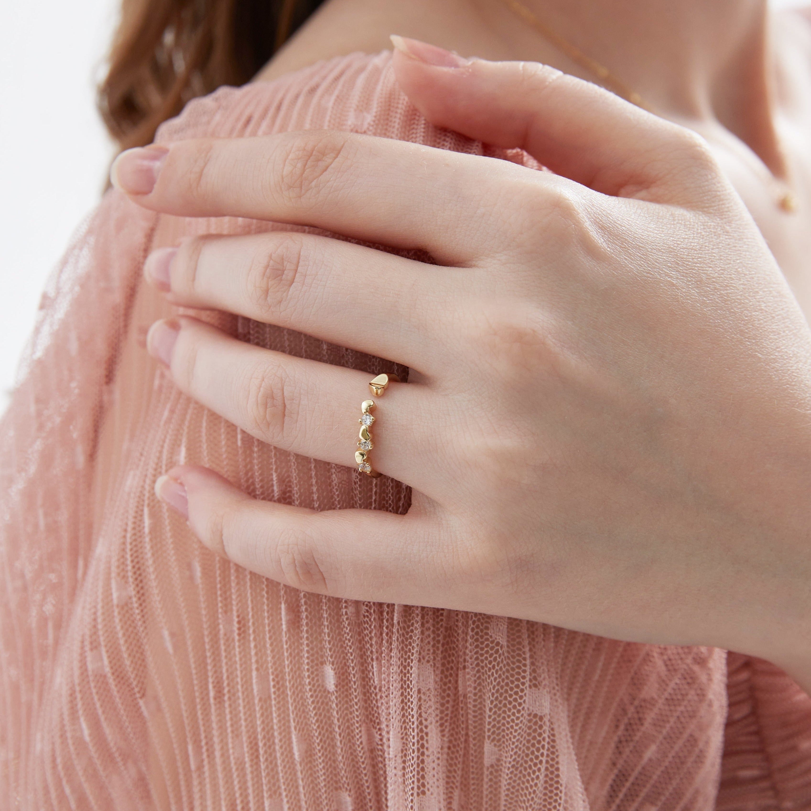 • Crafted with 14K Gold plated 925 Sterling Silver, this beautiful Tiny Sweet Heart Ring is adorned with a CZ crystal. Its irregular adjustable design provides a minimalist, timeless look, perfect for daily wear. Show her you care with this perfect gift!