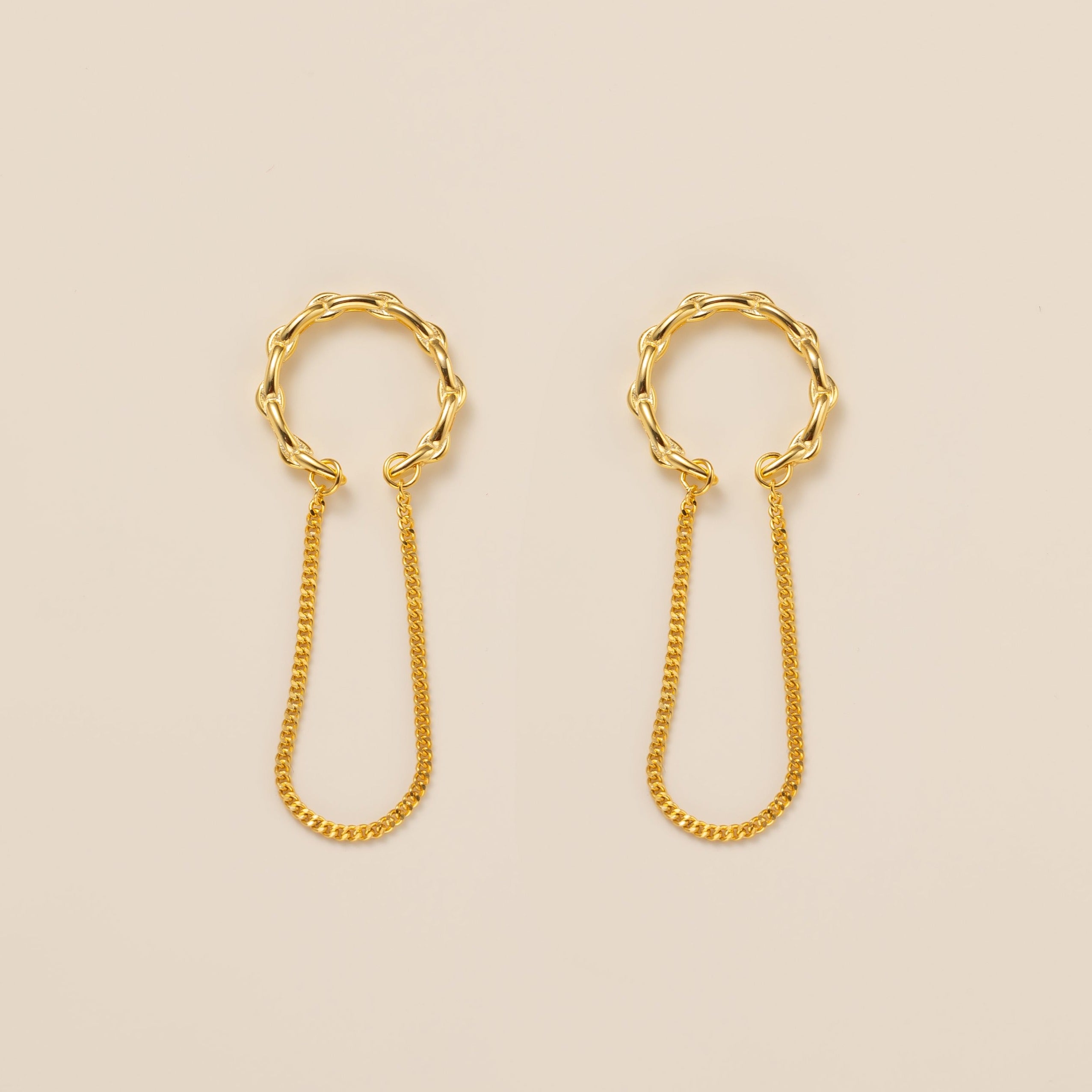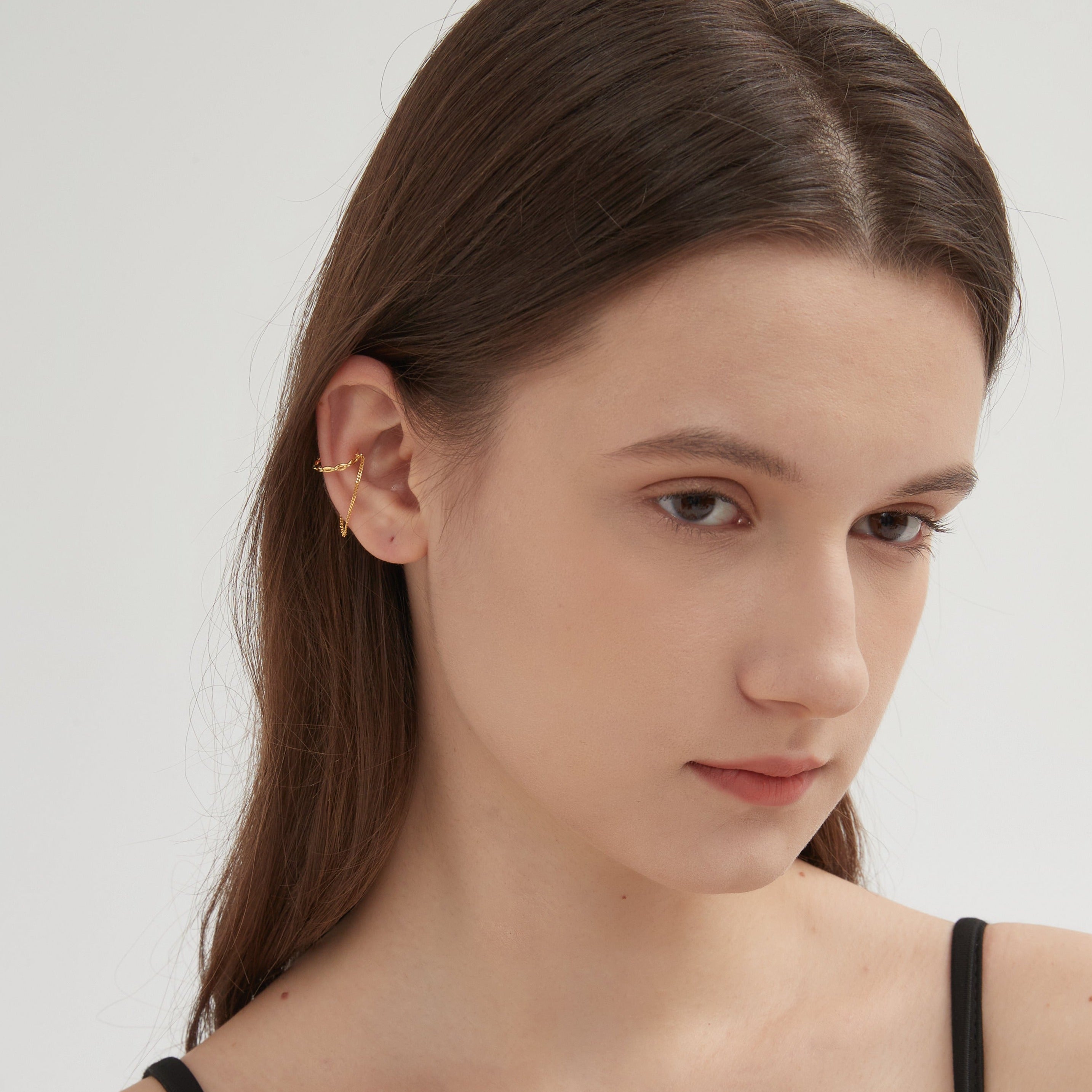 Twisted Circle Tassel Ear Cuff Earrings (S925)