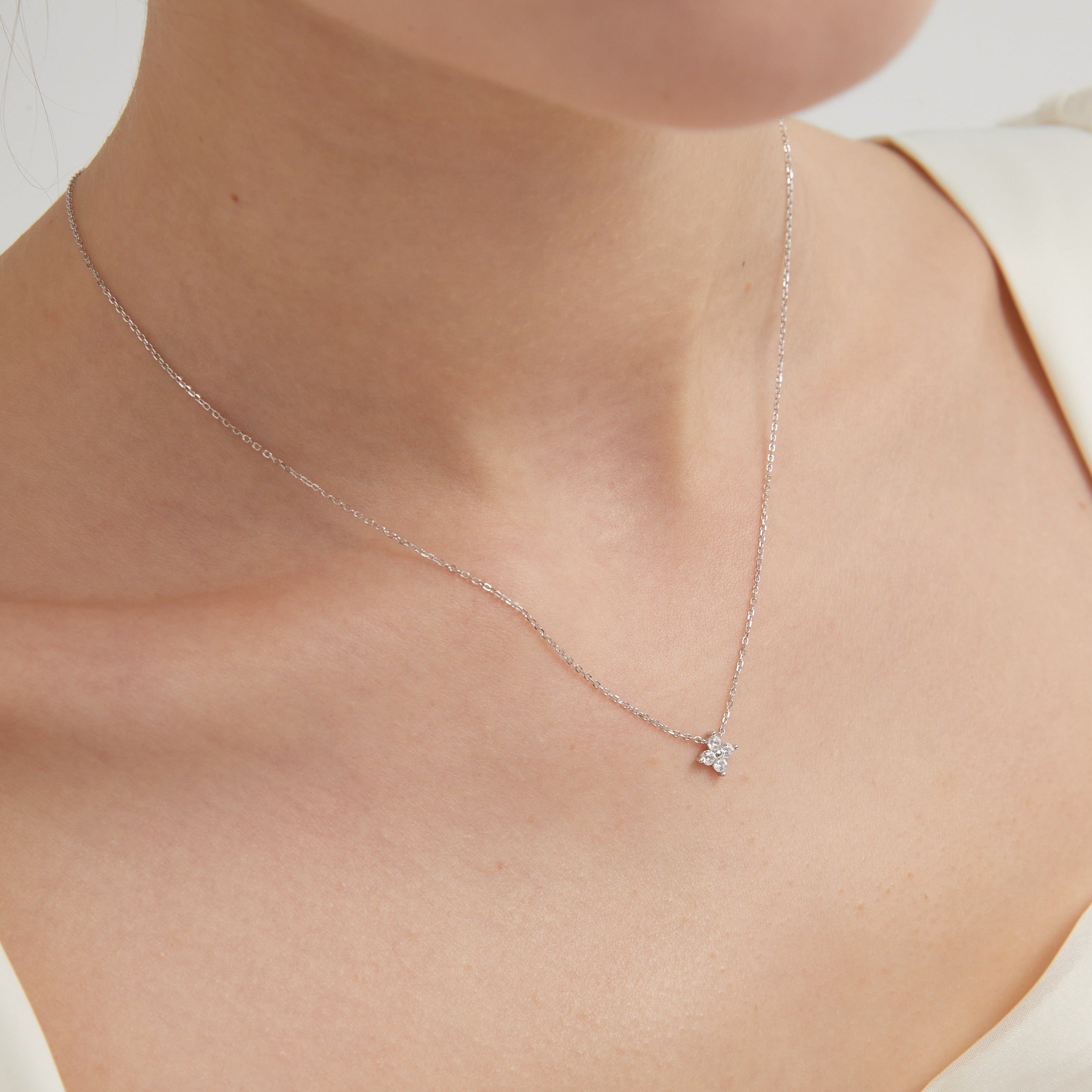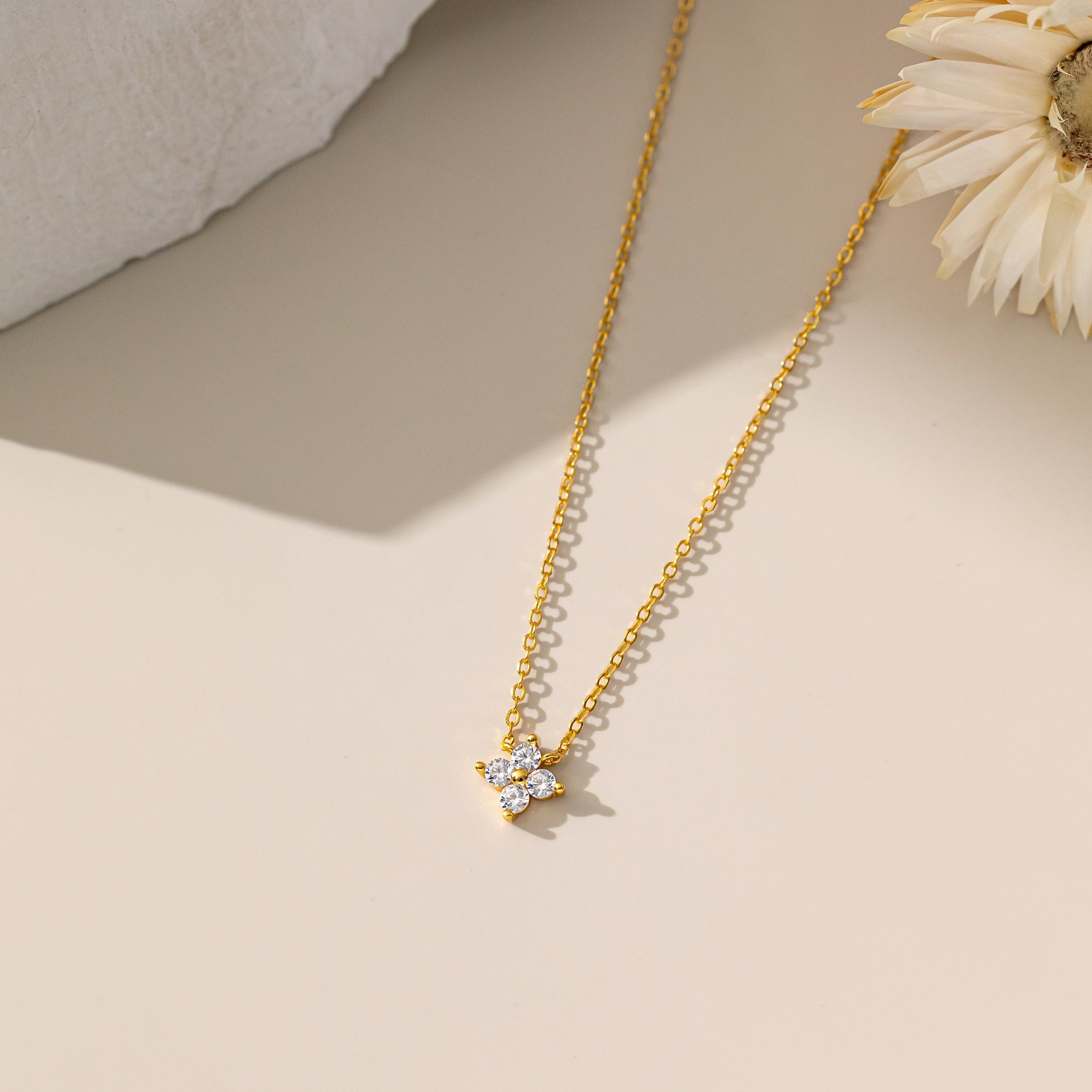 • This 925 Sterling Silver with CZ Clover Necklace is perfect for the special woman in your life. With a 14K Gold Plated Skinny Flower Necklace and Delicate Dainty Plant Jewelry, this minimalist design is sure to make her feel appreciated. A great gift for her, this necklace is sure to make her feel special.