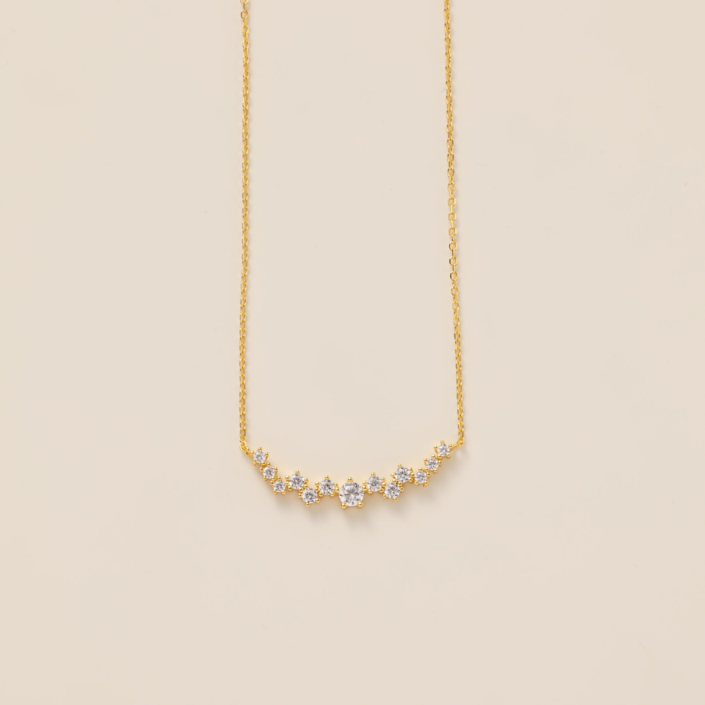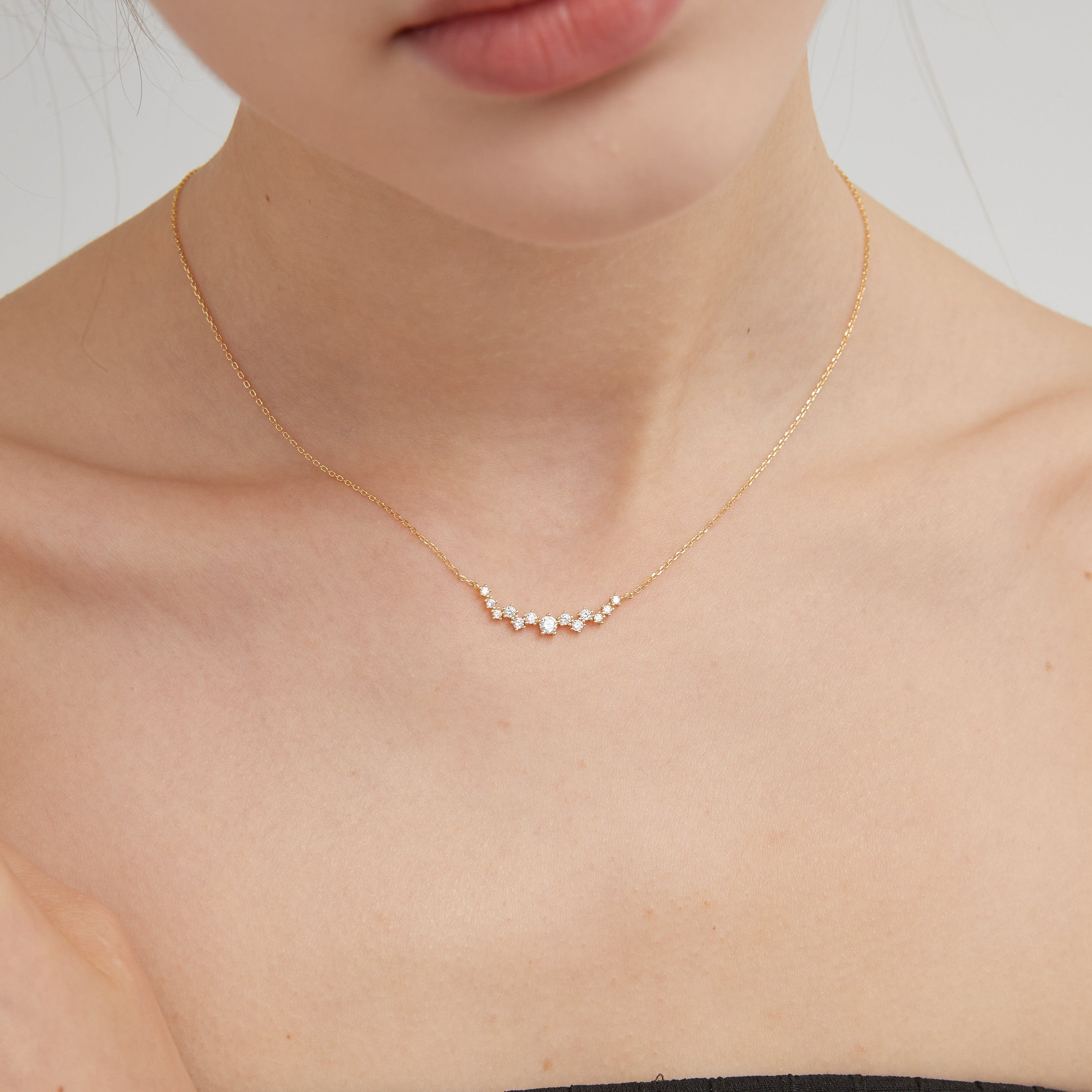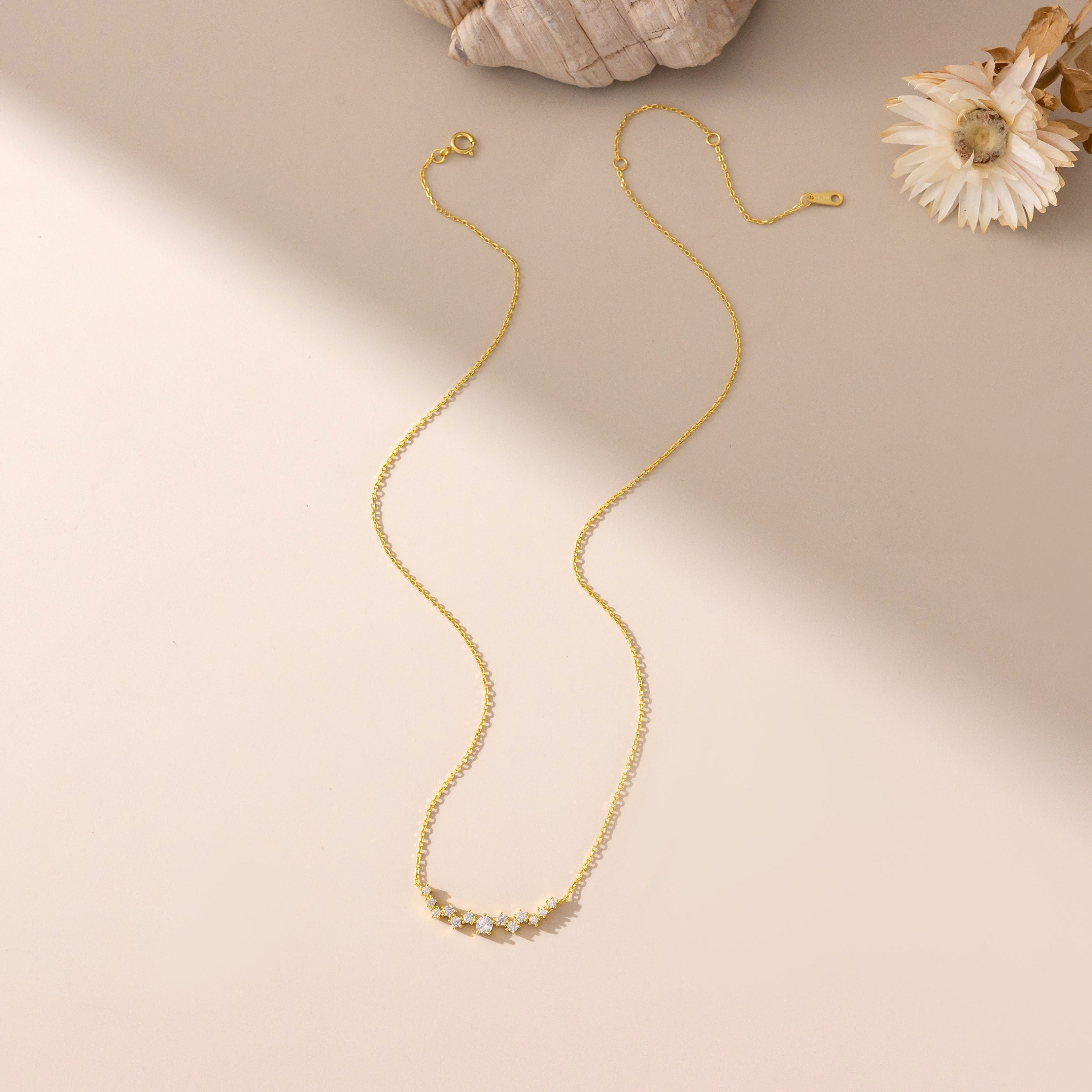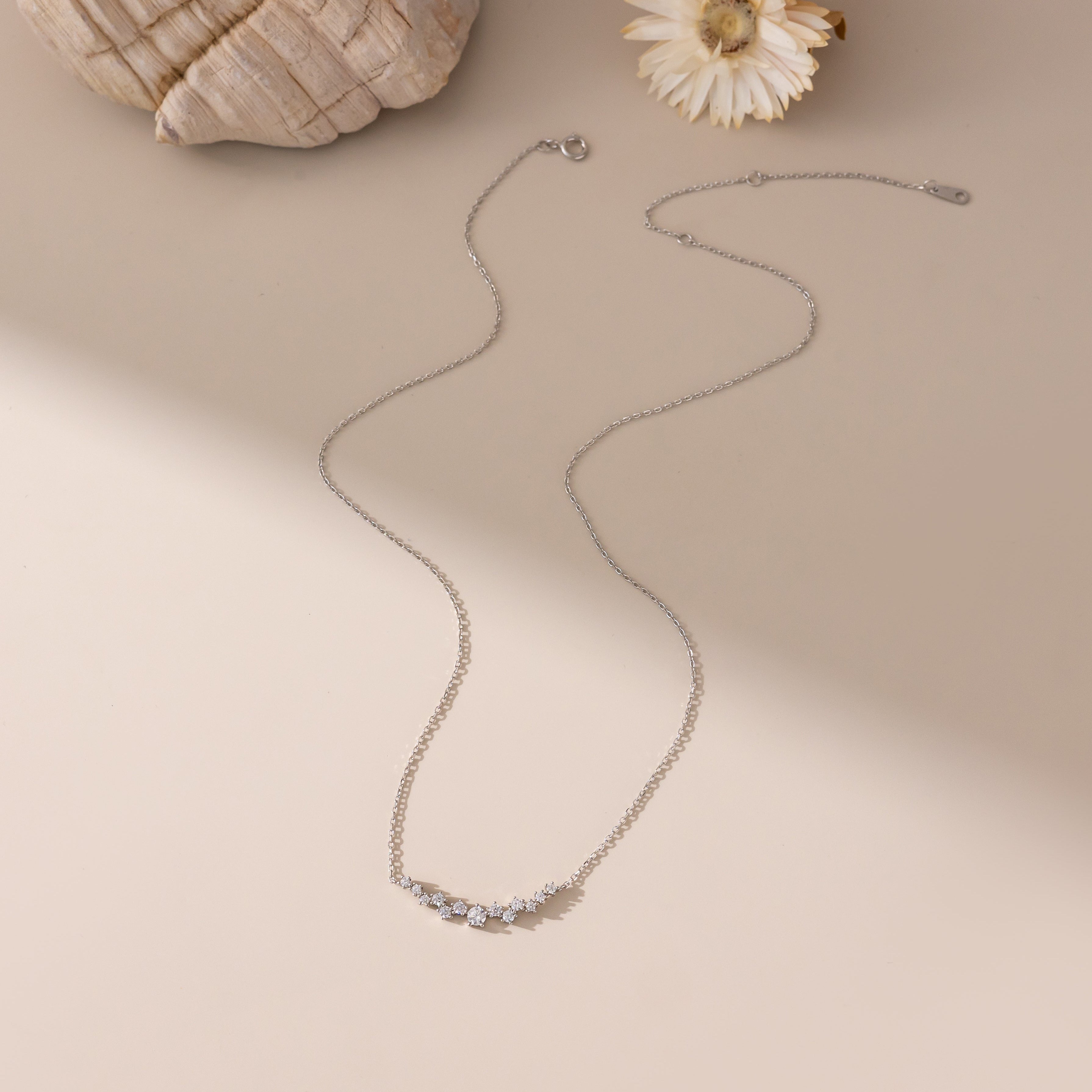 • This 925 Sterling Silver necklace is dazzling with its CZ diamond stars. The delicate and dainty design of this necklace will add a subtle sparkle to your wedding jewelry ensemble and makes a perfect gift for her.