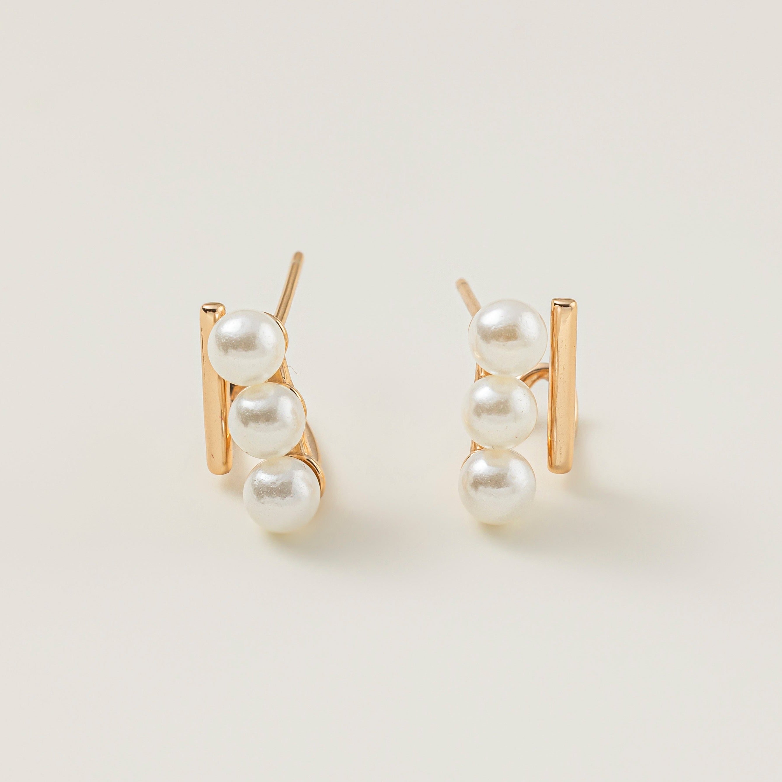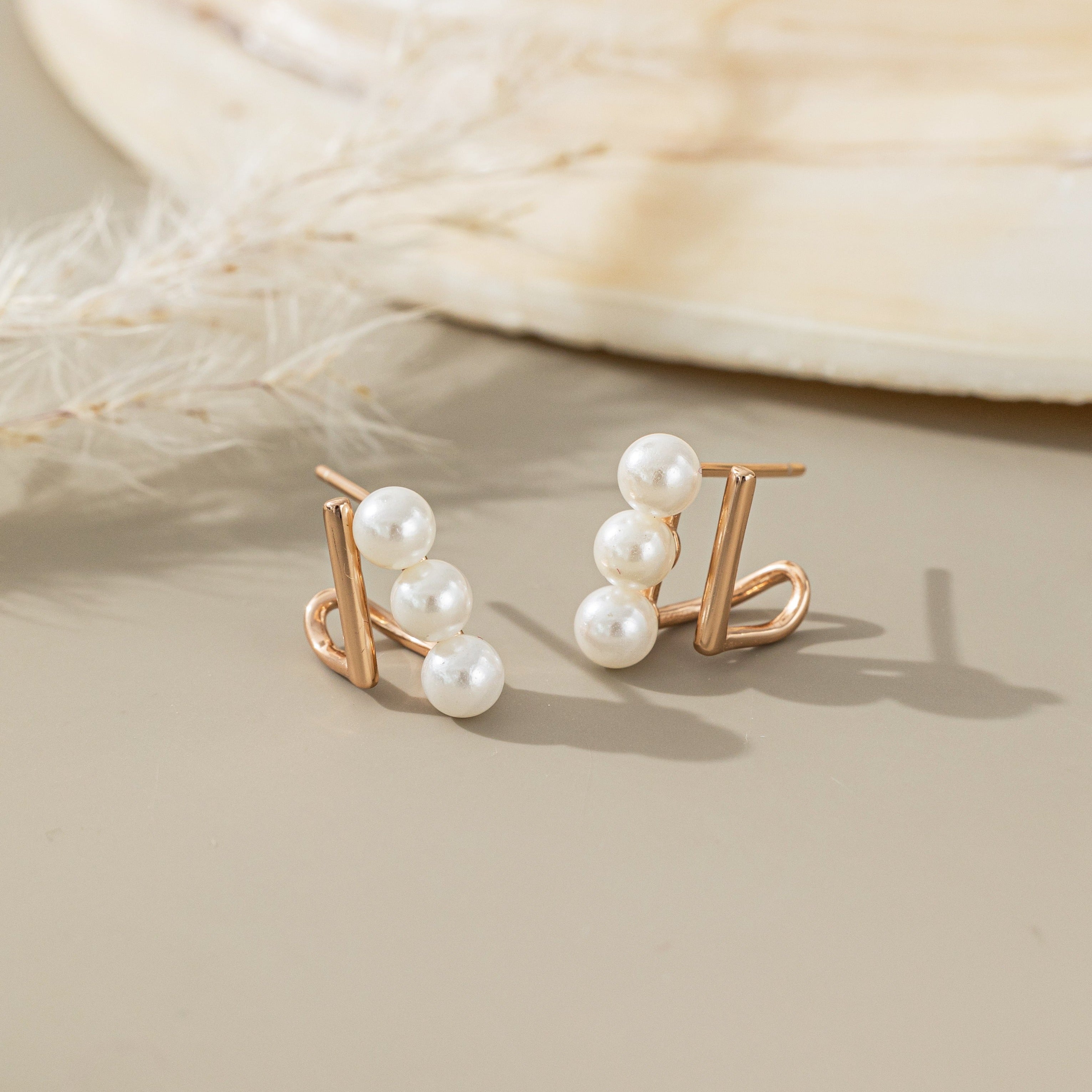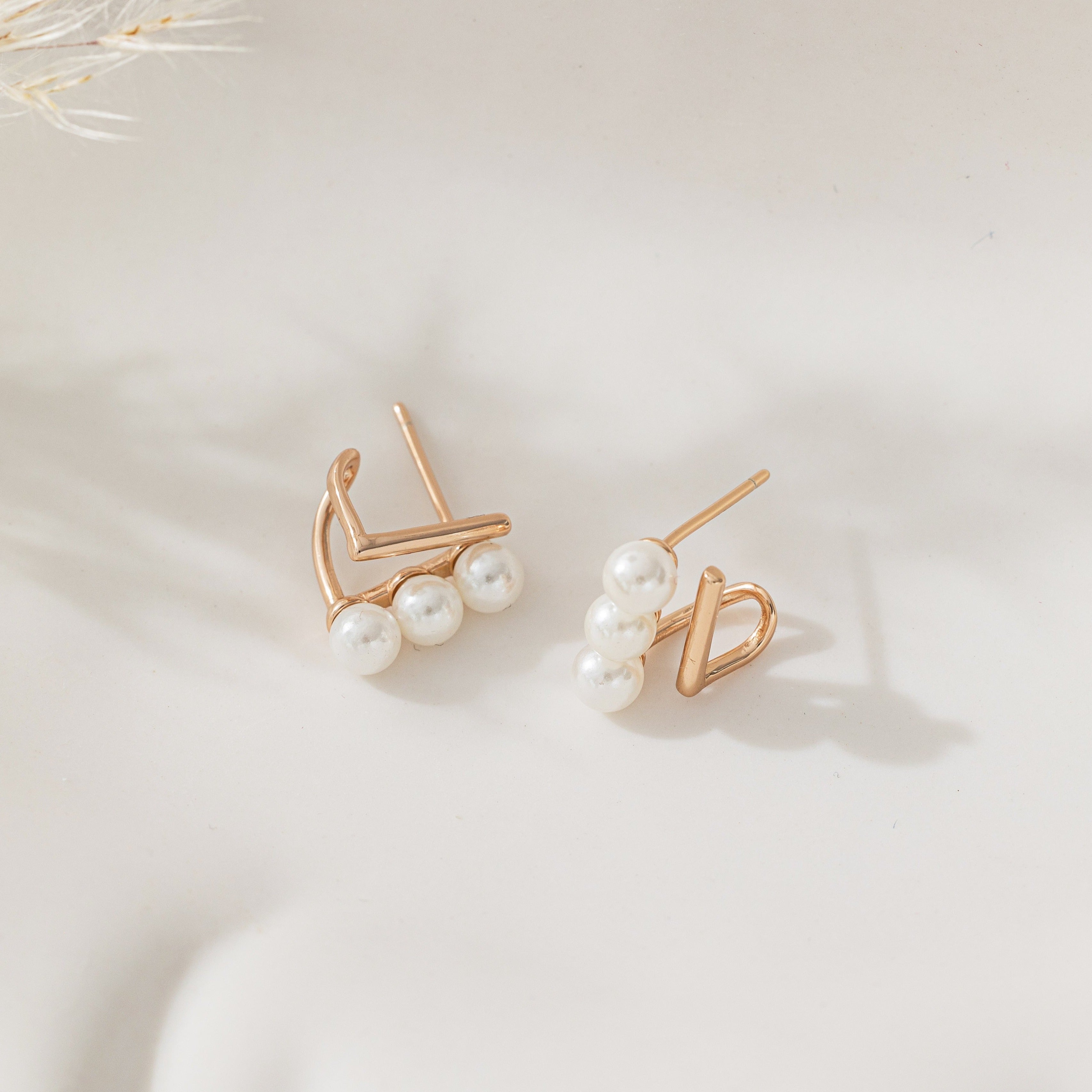 • These Triple Pearls Stud Earrings (S925) make a great gift for her. Crafted from 18K champagne gold plated material, they feature three lustrous pearls perfect for completing any elegant look.