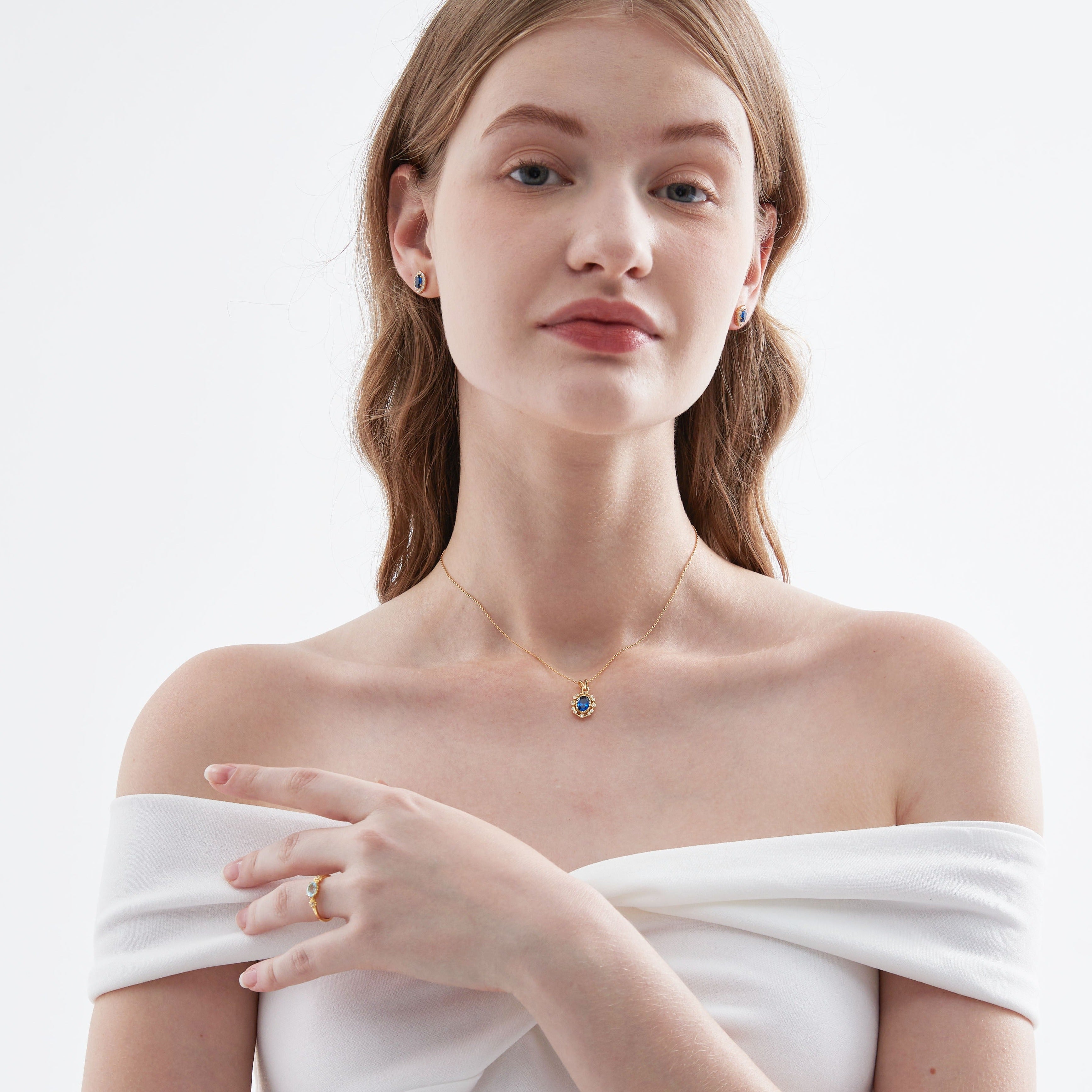 • This timeless gold plated 925 Silver Simulated Sapphire Vintage Style Necklace is a special gift for her. The necklace is adjustable with a blue stone chain and a tiny birthstone pendant, creating a unique and beautiful look.