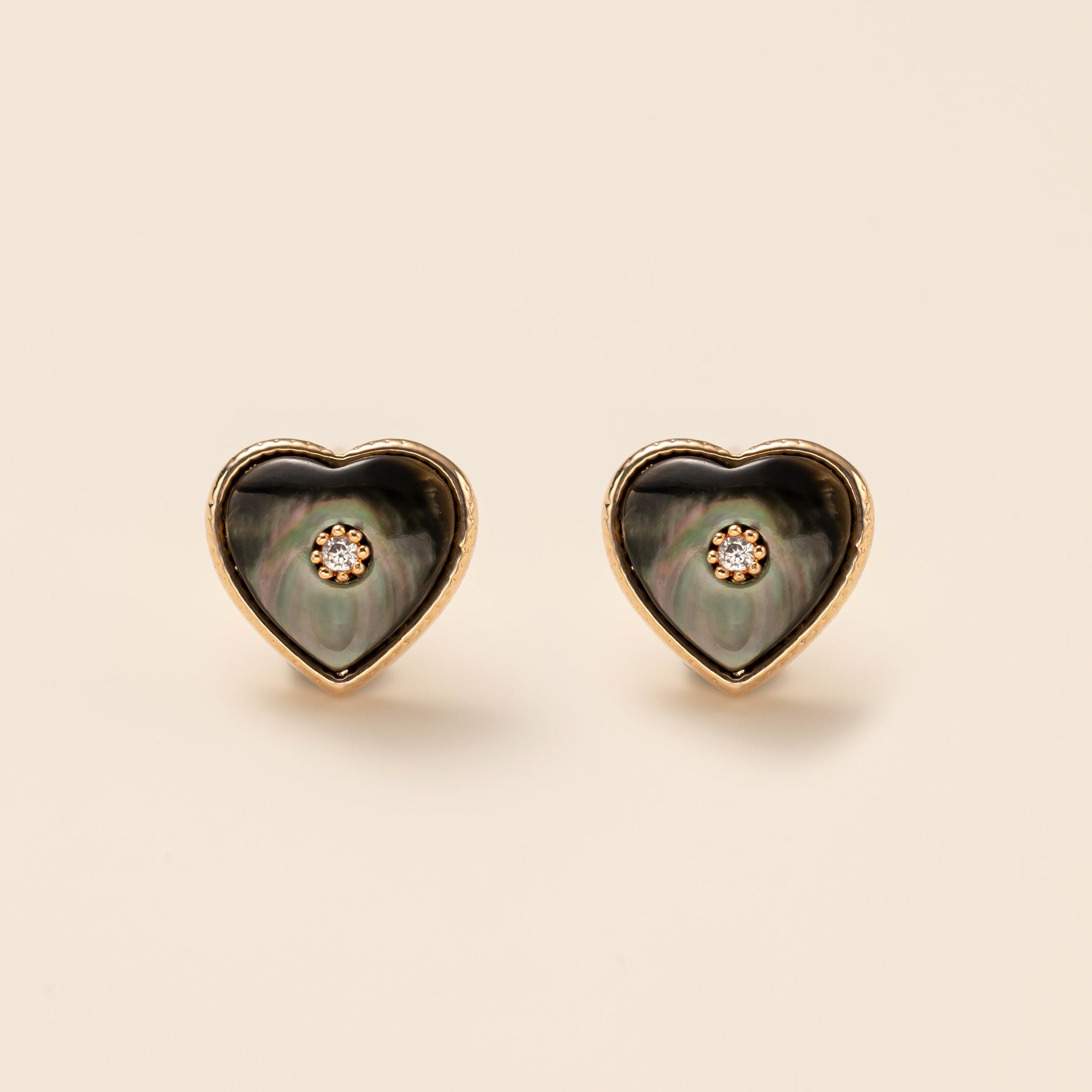 • This classic, minimalist design of Natural Black Mother of Pearl Heart with CZ Stud Earrings - Gold plated Earrings, Skinny Modern Dainty Hoop Earrings make them the perfect gift for her. These timeless earrings are modern and dainty, ideal for regular wear.
