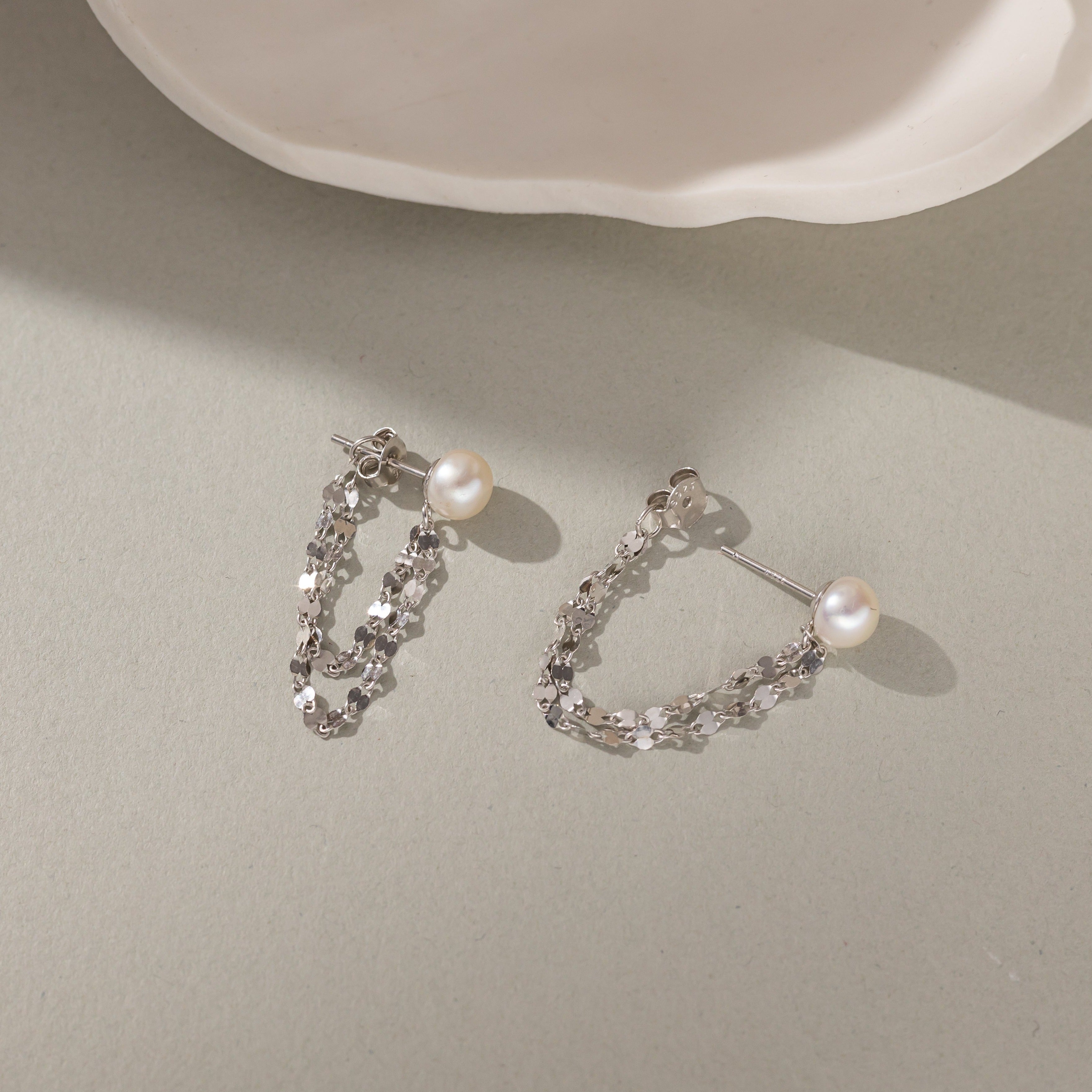 • These Natural Pearl Tassel Earrings exude classic elegance. Their duo disc chain is accentuated by a pearl stud and a 2.5cm dangle drop, perfect for making a statement. Crafted from sterling silver, you can trust these earrings will stand the test of time.