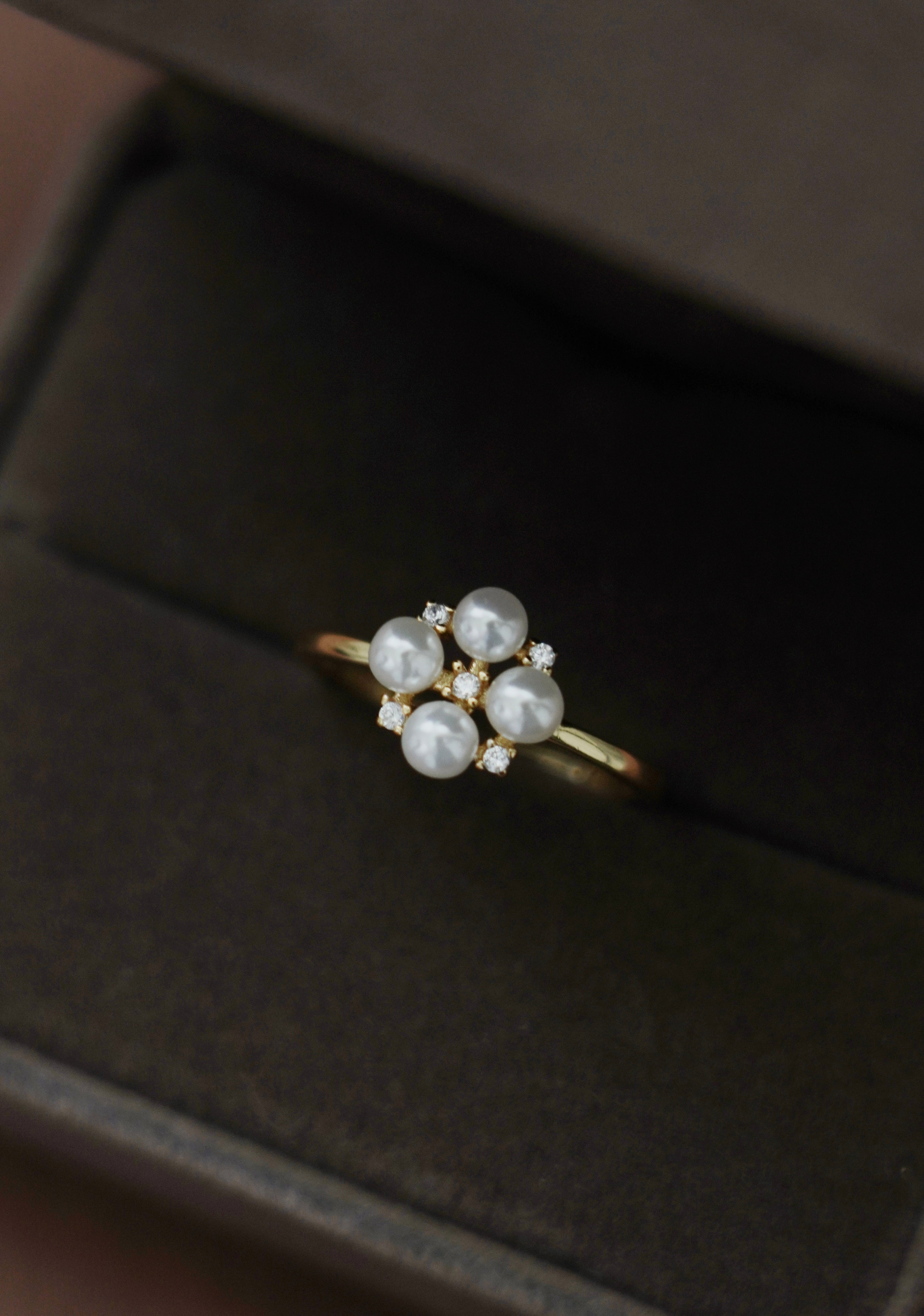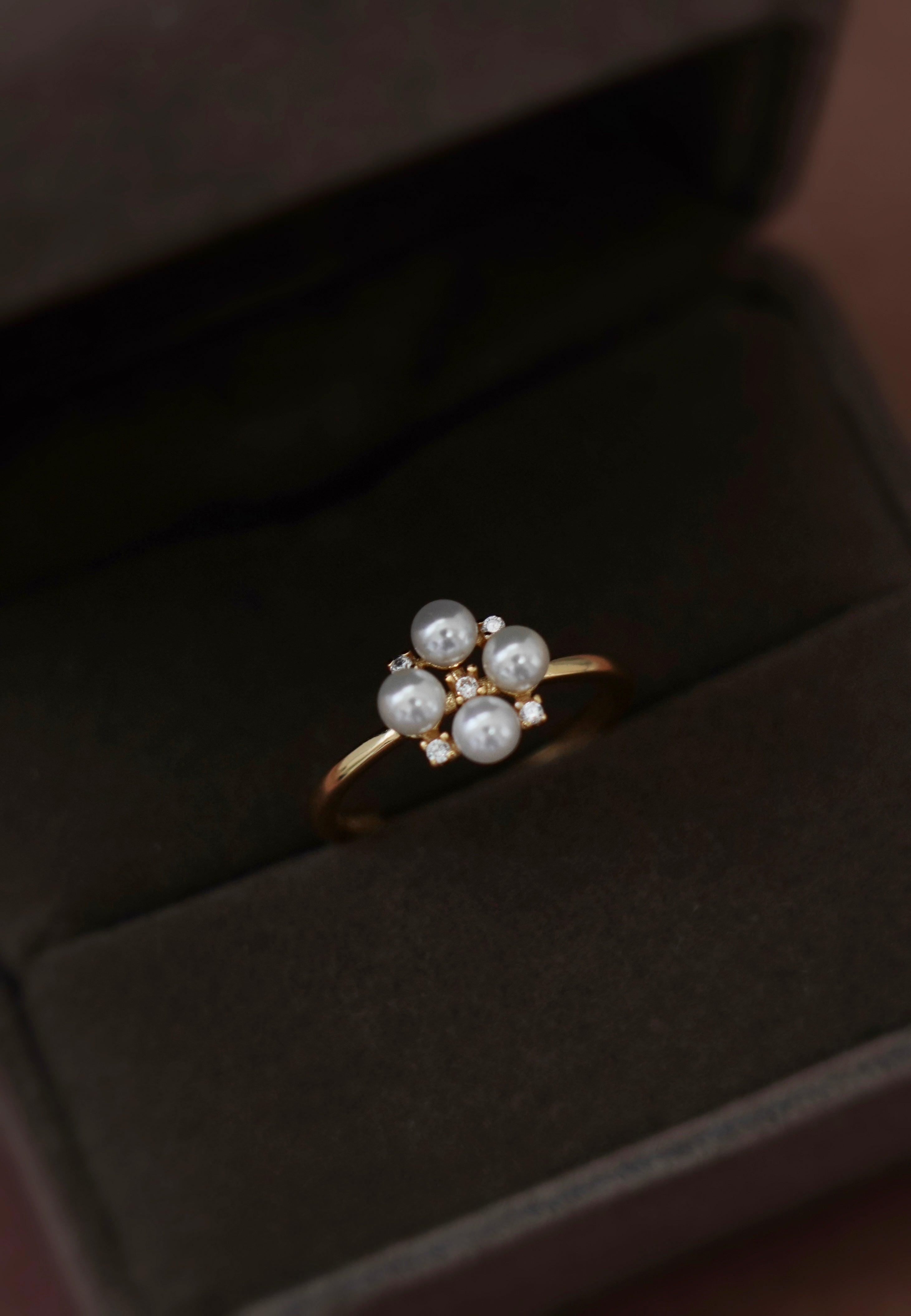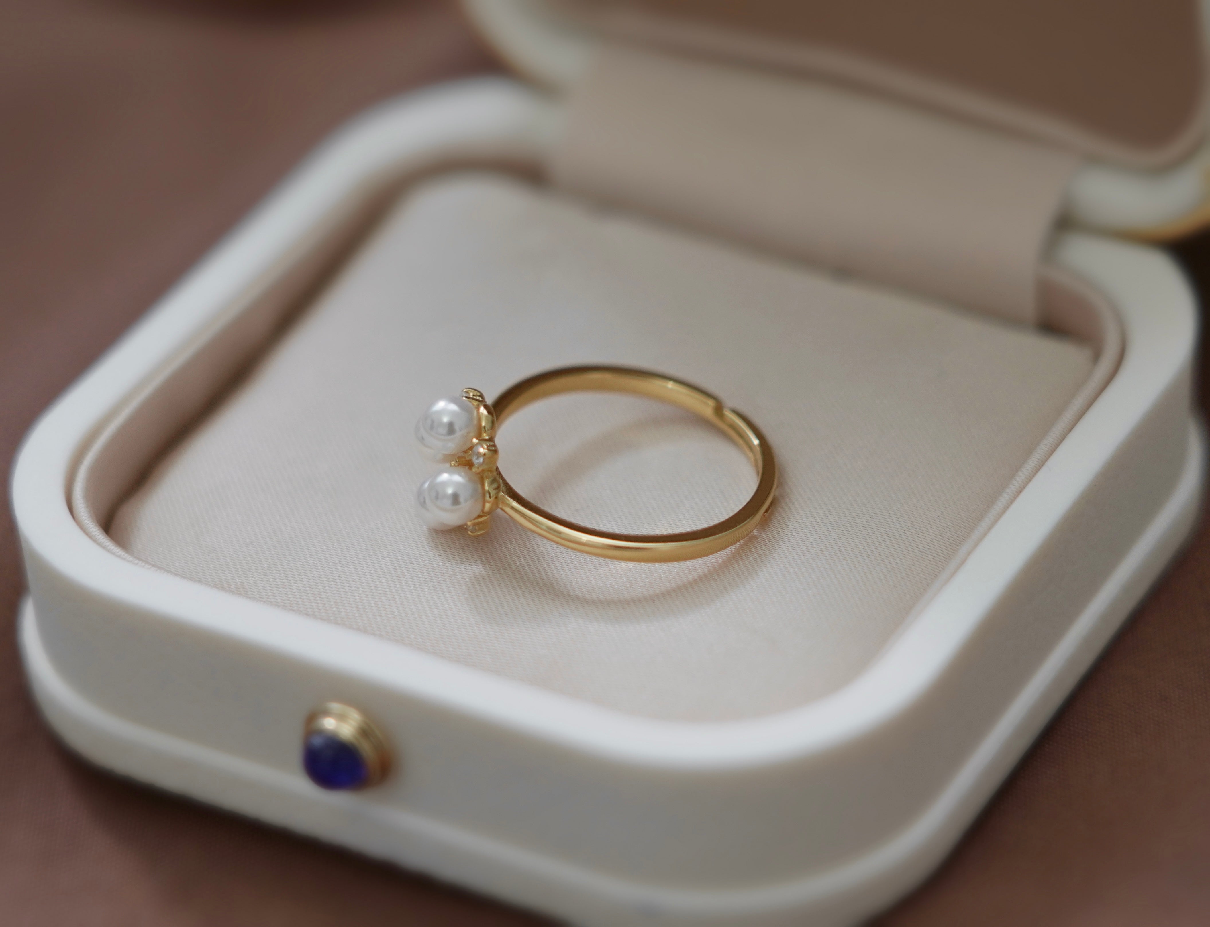 • This classic Pearl Ring is crafted from 18K Gold Plated 925 Silver for a timeless, vintage look. This delicate birthstone ring is adjustable for a perfect fit, and it comes with a matching necklace available. For a sophisticated style, this is the ideal accessory.