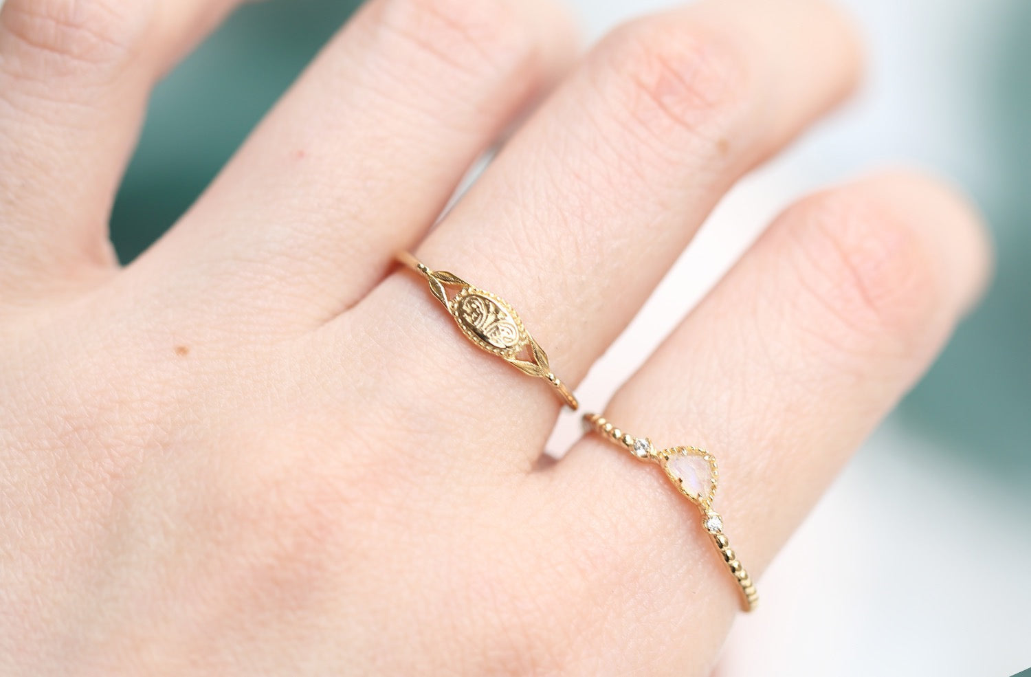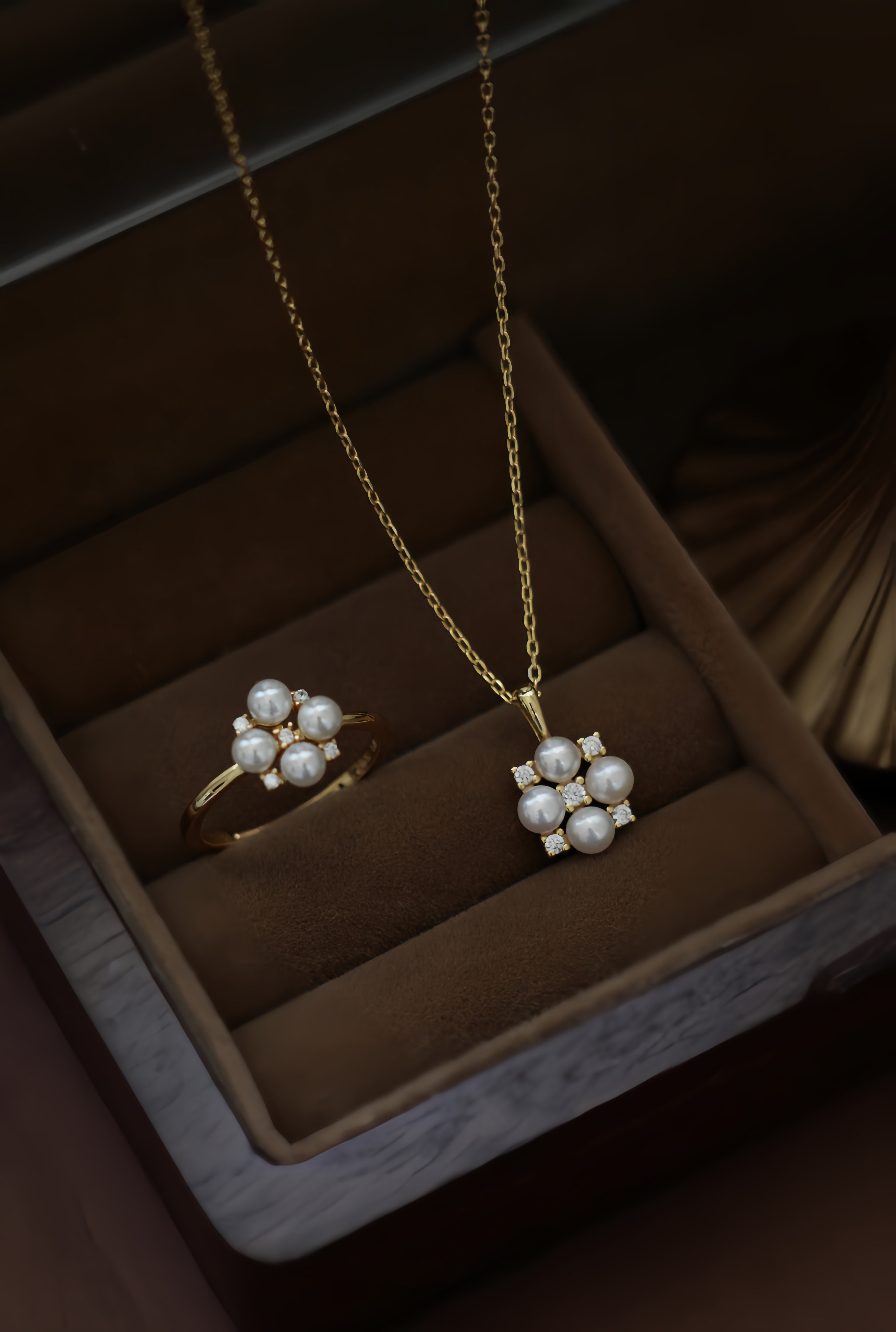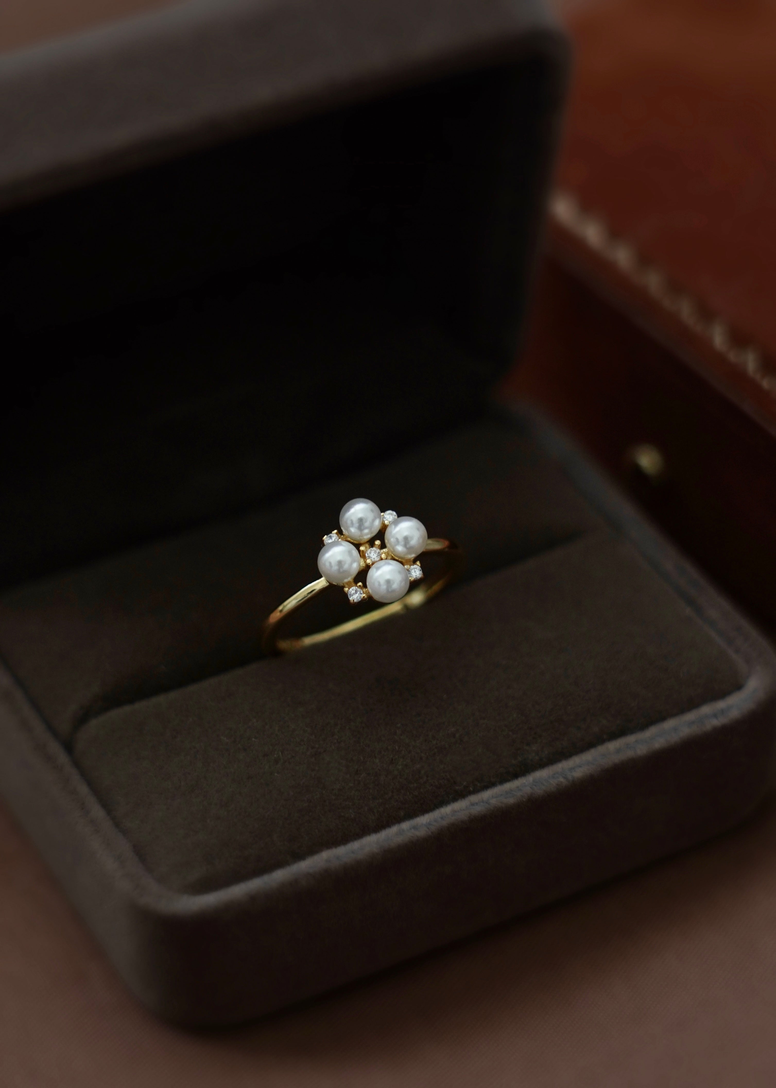 • This classic Pearl Ring is crafted from 18K Gold Plated 925 Silver for a timeless, vintage look. This delicate birthstone ring is adjustable for a perfect fit, and it comes with a matching necklace available. For a sophisticated style, this is the ideal accessory.