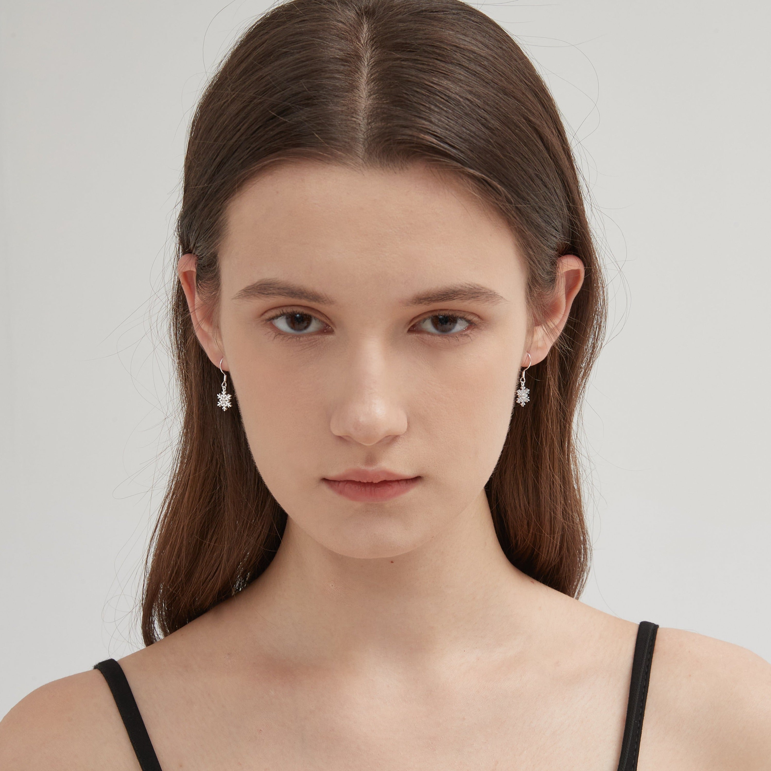 • These Snowflake Hook Dangle Earrings are crafted from 925 Sterling Silver and feature tiny cz diamonds in the center of an intricate snowflake design. Perfect for formal or casual occasions, they offer sparkle with sophistication. Perfect for Christmas