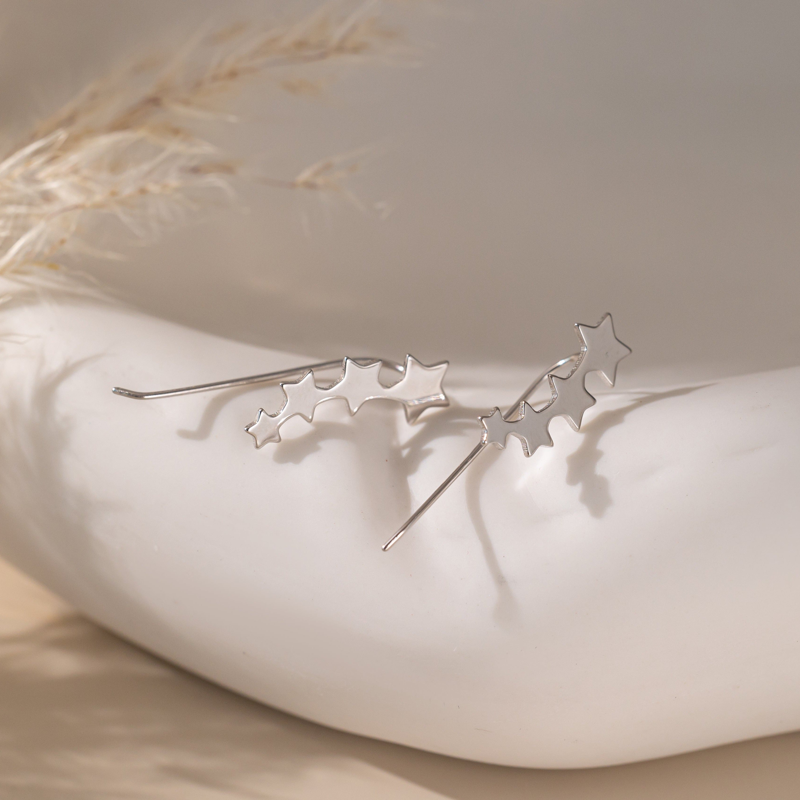 • Slim and elegant, these sterling silver star crawler earrings feature a modern design with minimalist geometric accents. The perfect accessory as a gift for her.