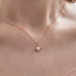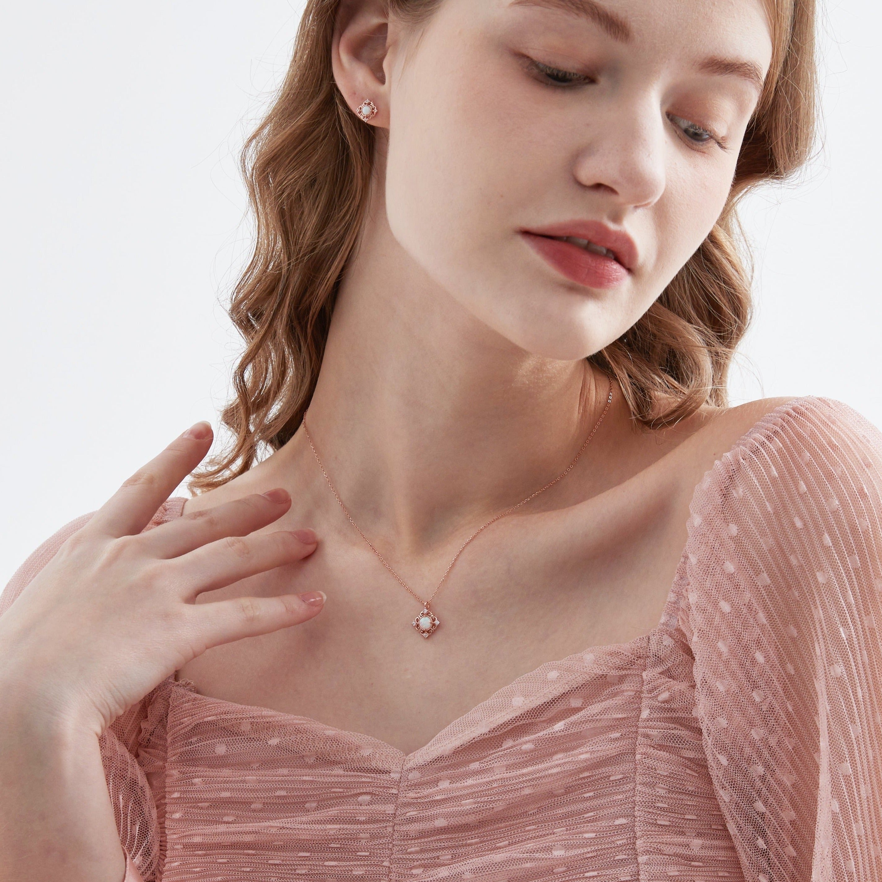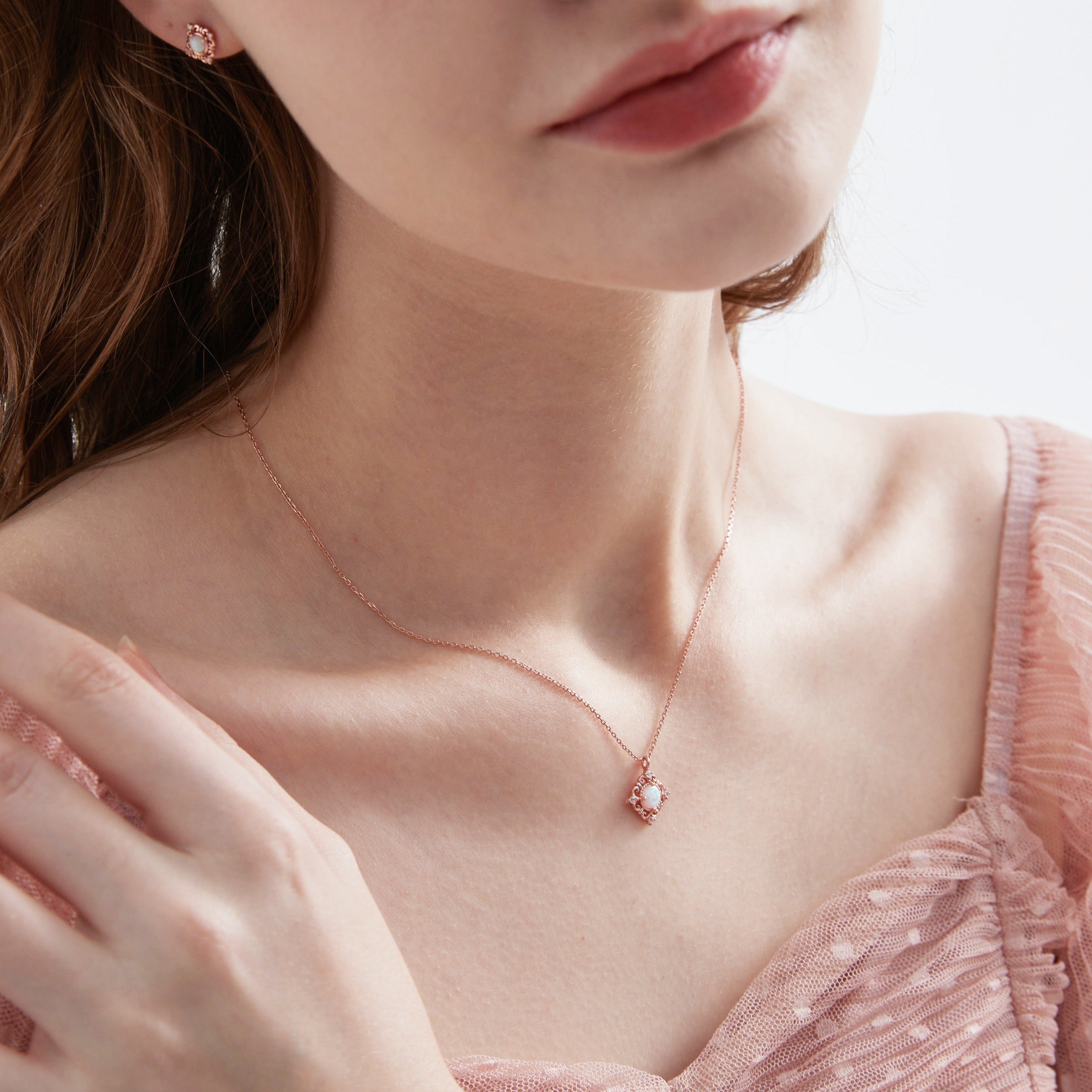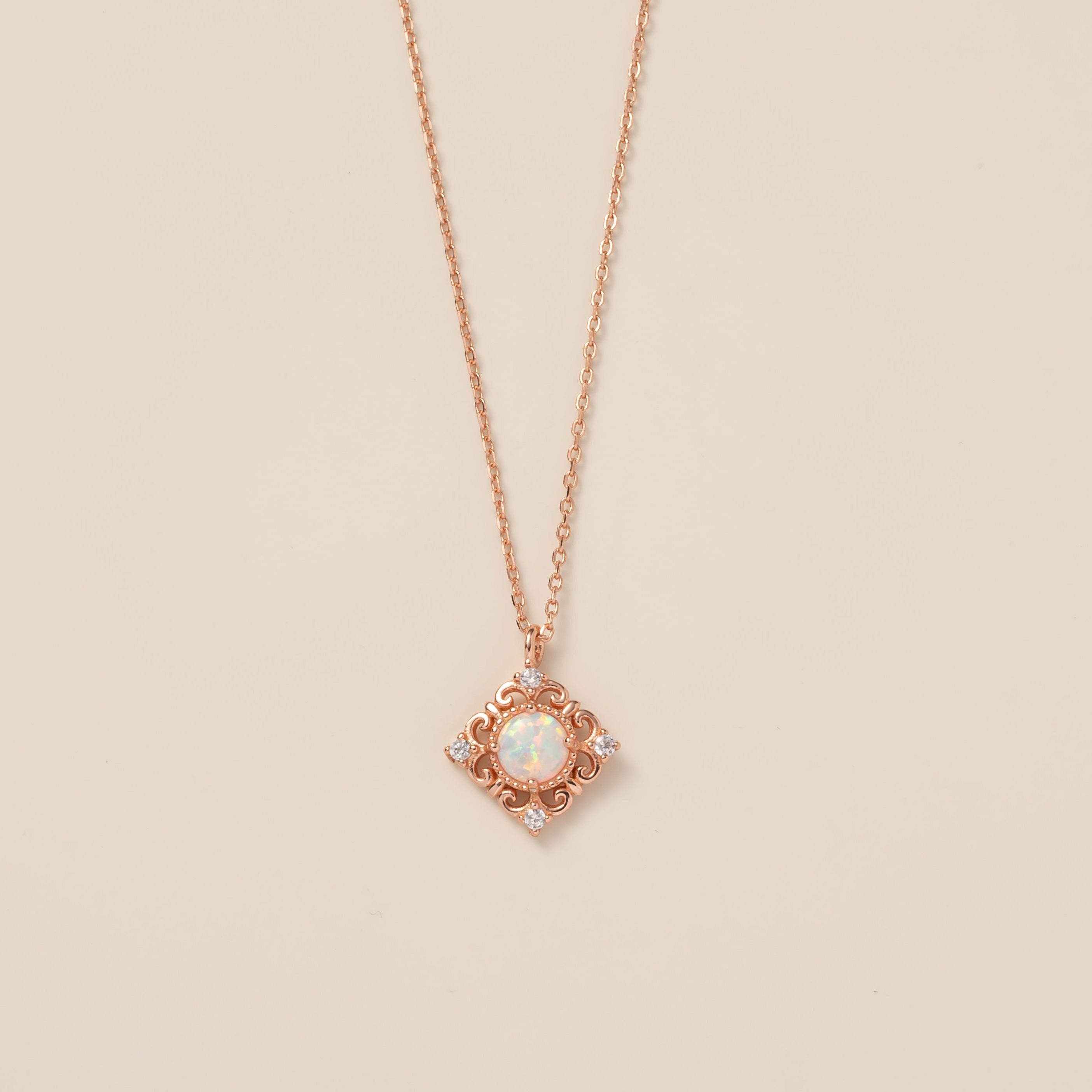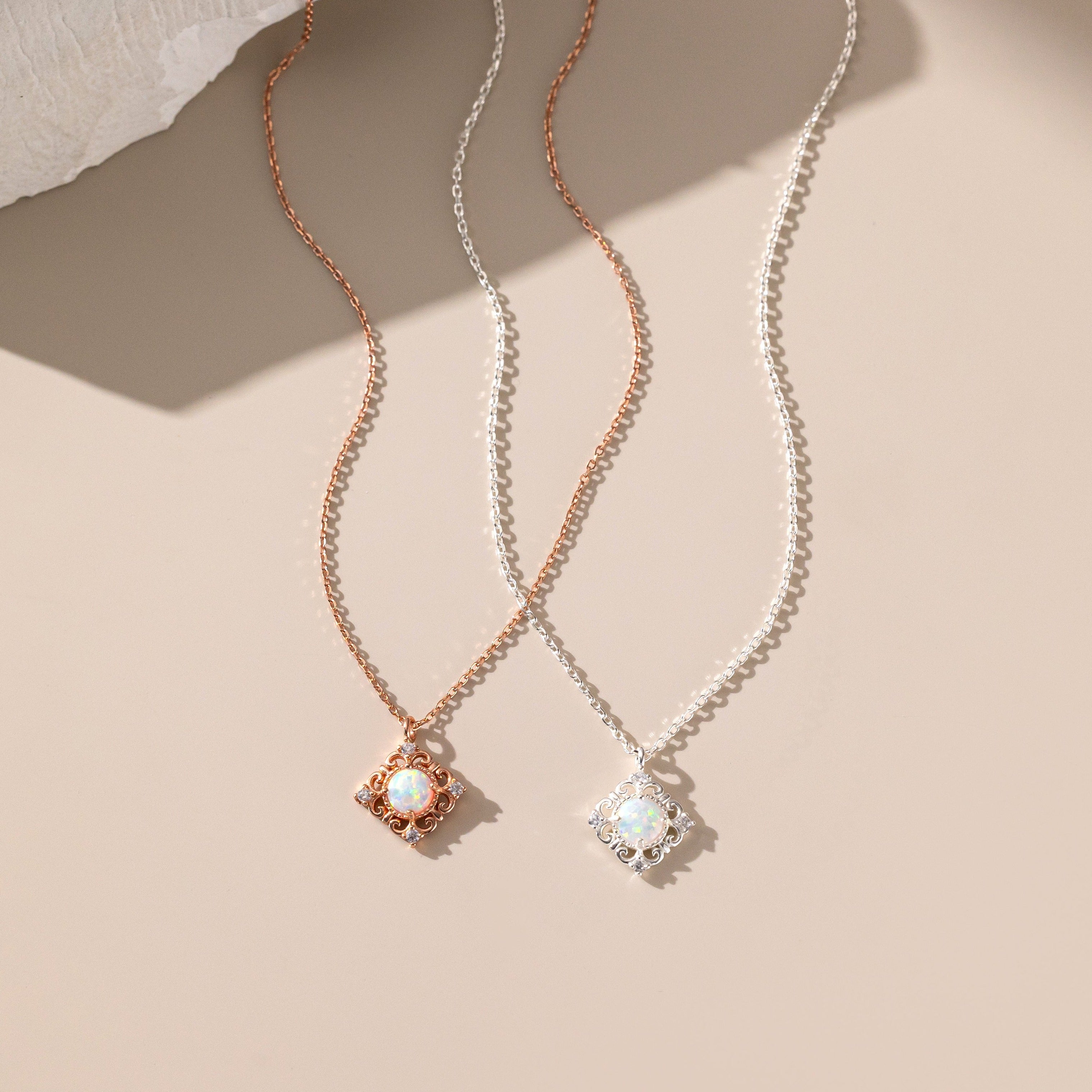 • Exquisite Sterling Silver Vintage Opal with CZ Crystal Circle Necklace is complemented by a delicate square pattern and semi-precious bead frame. Enjoy the delight of minimalist geometric design. Perfect gift for her!