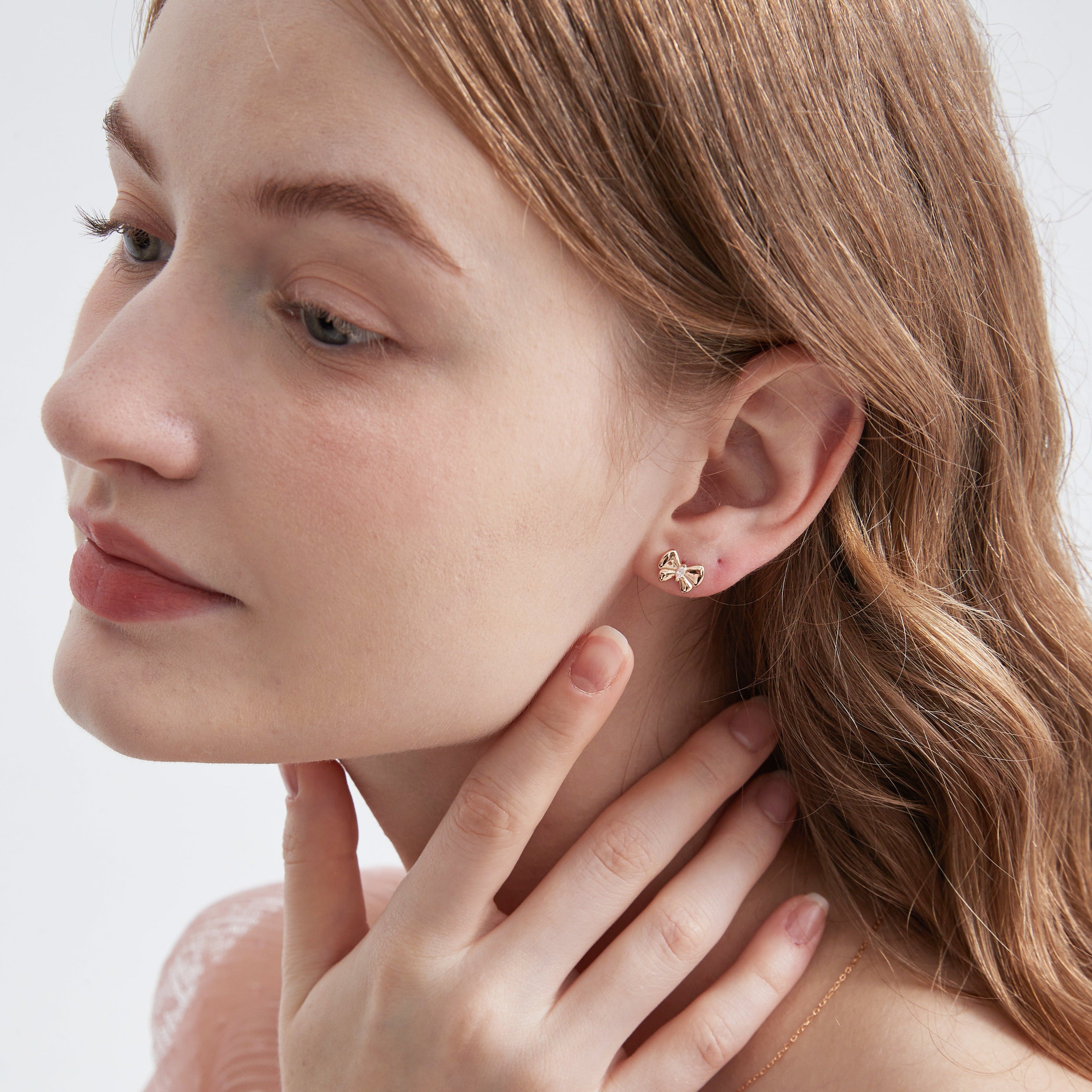 • Feature classic minimalism with these 925 Sterling Silver Earrings, plated with Champagne Gold and set with petite CZ bowknots. The slender and stylish design makes them perfect for any occasion.
