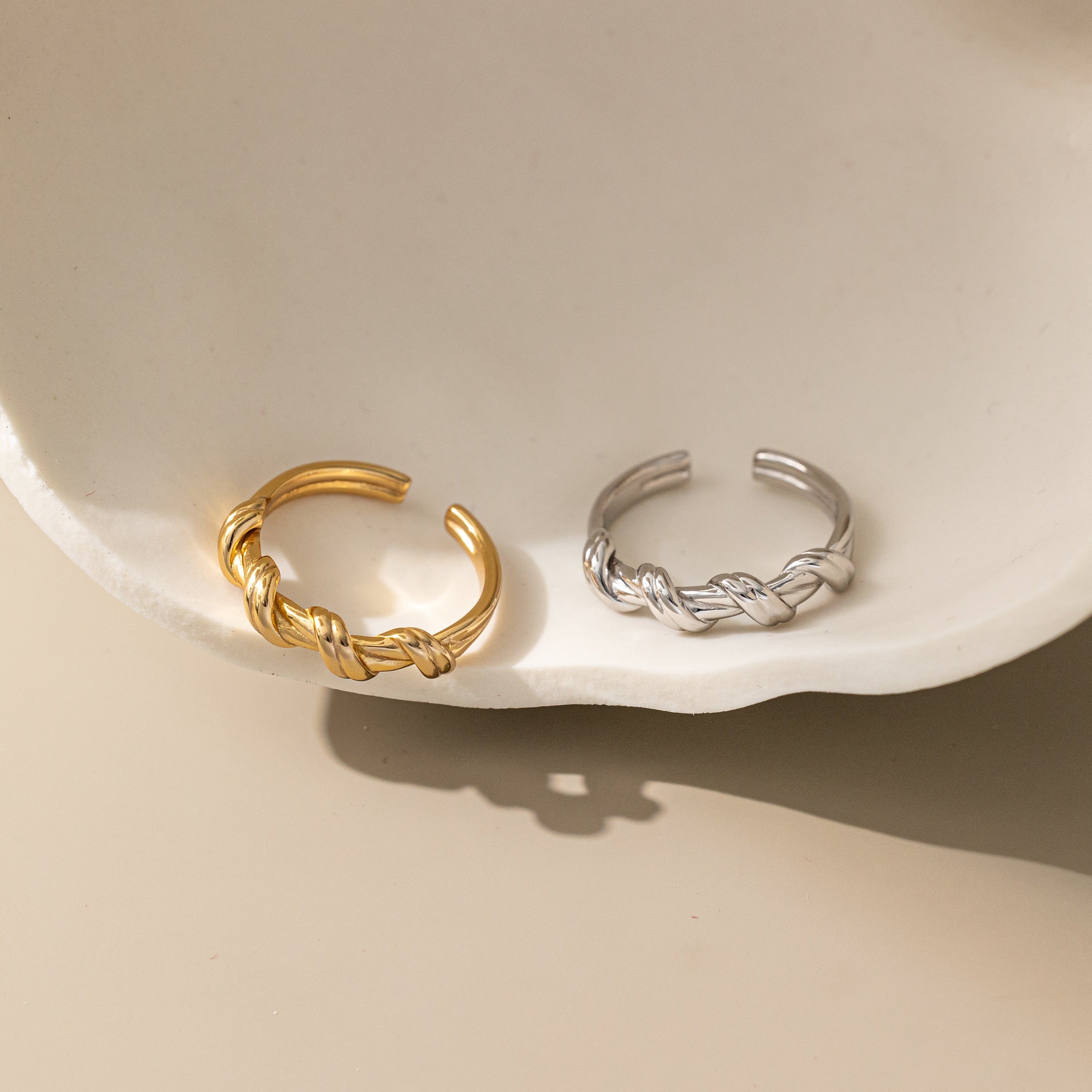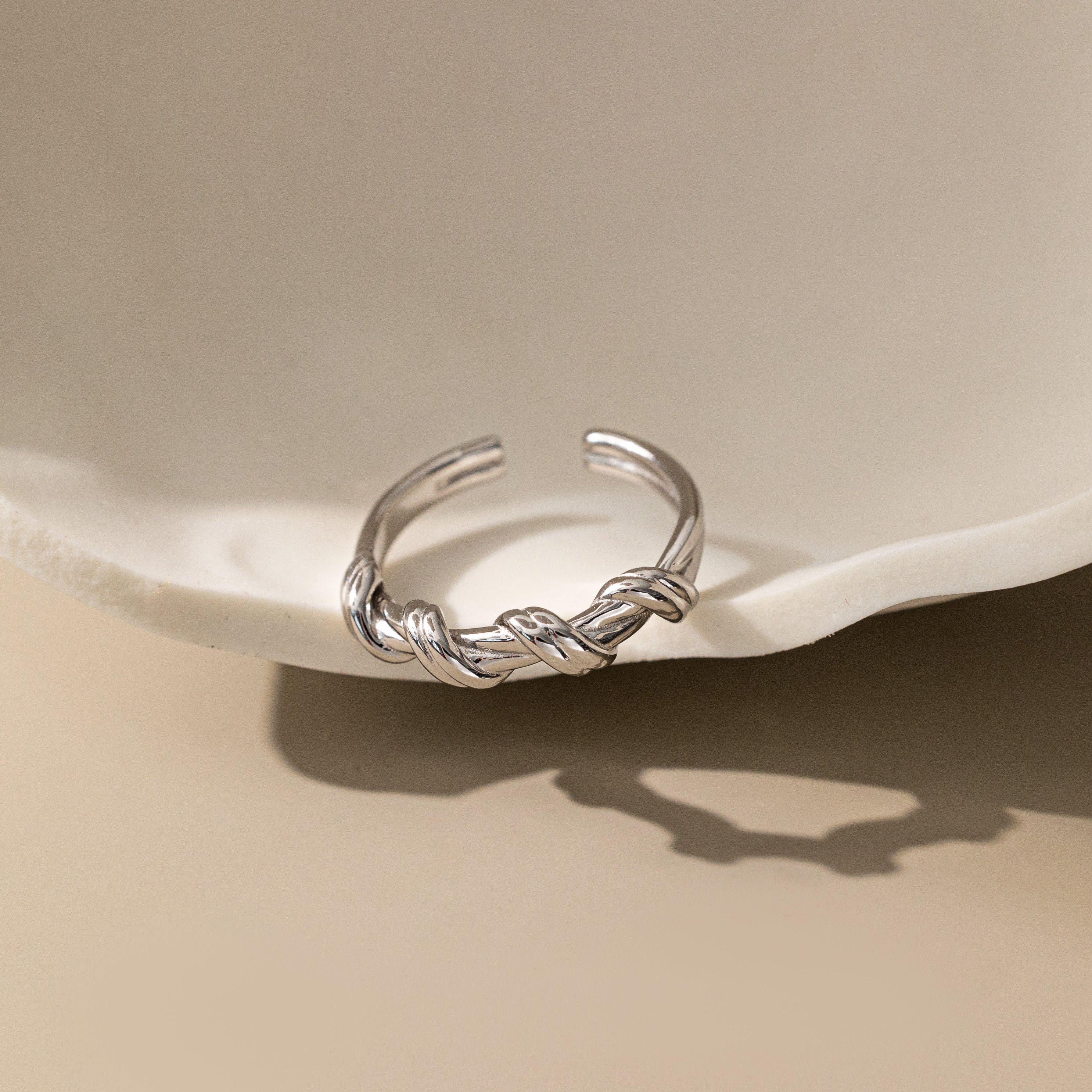 • This sterling silver Twisted Adjustable Promise Ring features a unique design that comfortably fits any wearer. Its timeless minimalistic look will provide endless visual beauty. Available in 2 colours.
